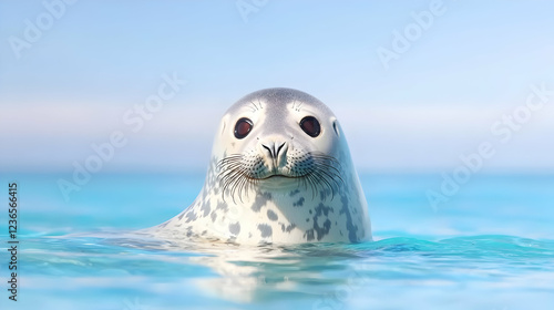 Curious seal in ocean, sunny day, calm water