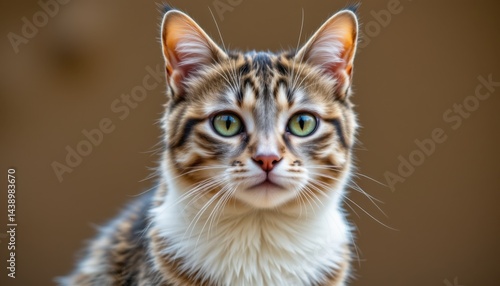 Curious tabby cat portrait indoor setting photography warm environment close-up view feline expression