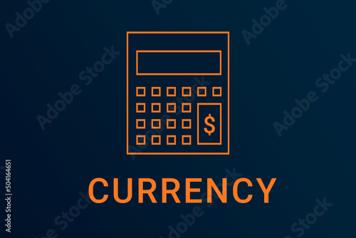 currency text. Calculator symbolizes economy. currency logo on dark background. Illustration currency . Financial screensaver. Minimalist orange calculator