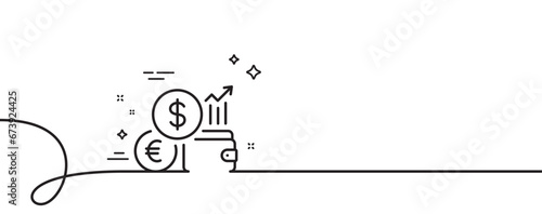 Currency rates line icon. Continuous one line with curl. Money exchange sign. Trade wallet symbol. Currency rate single outline ribbon. Loop curve pattern. Vector
