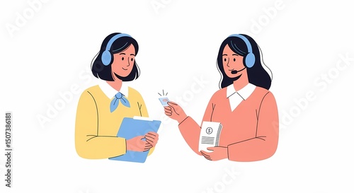 Customer Service Representatives Taking Payment at Help Desk with Headsets