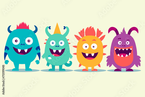 Cute abstract cartoon characters set. Bundle of different types of colorful monsters with simple shapes. Mascots expressing emotions. Vector childrens illustration in flat design isolated collection