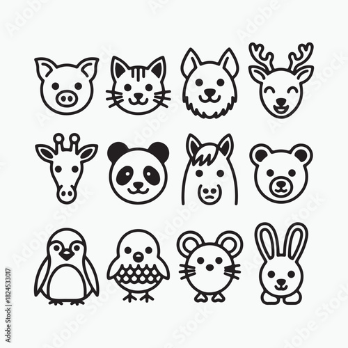 Cute Animal Faces Icon Set cartoon
