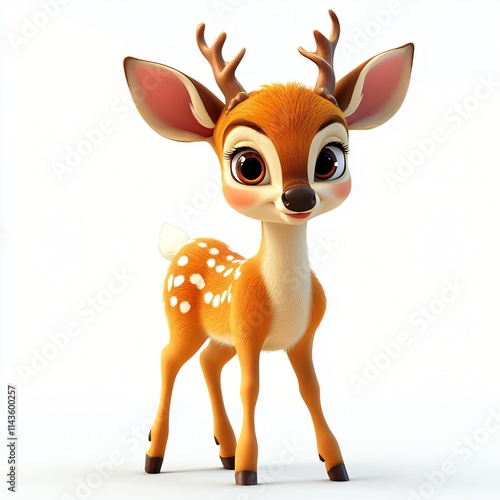 Cute Baby Deer Fawn Cartoon Character 3D Render