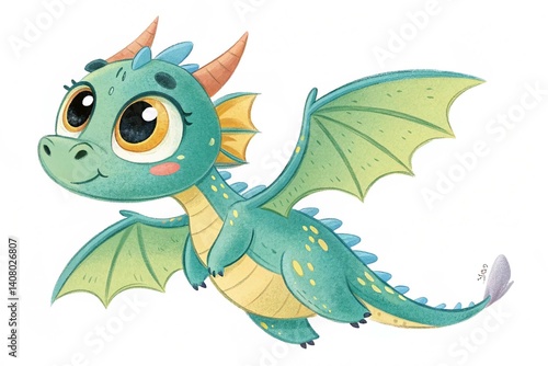 Cute baby dragon cartoon flying with white background