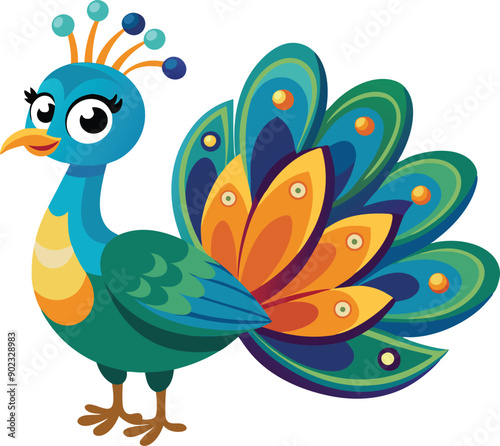 Cute Beautiful Cartoon Peacock Vector Illustration Art