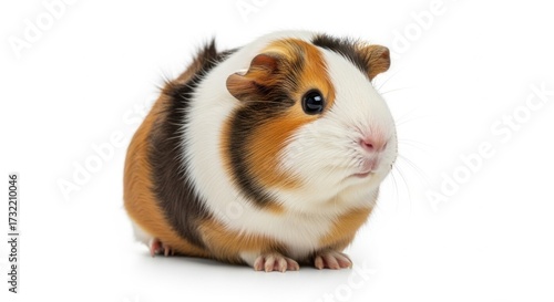 Cute Brown White Black Guinea Pig Sitting on White Background