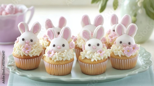 Cute Bunny Cupcakes with Floral Decorations for Festive Celebrations
