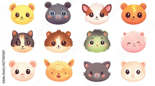 Cute cartoon animal faces, various animal heads, cheerful animal portraits.