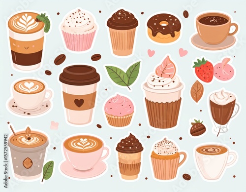 Cute Cartoon Coffee And Dessert Collection