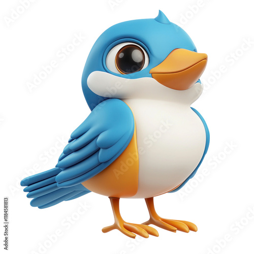 Cute Cartoon Cotinga Bird Icon in 3D Style with Bright Colors on a transparent background