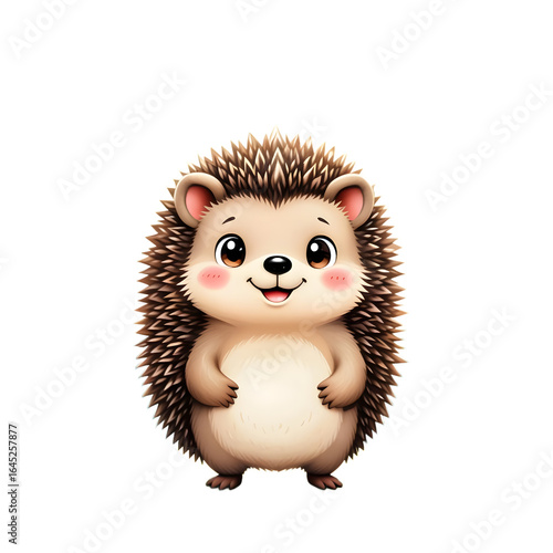 Cute cartoon hedgehog standing with a happy expression on white background