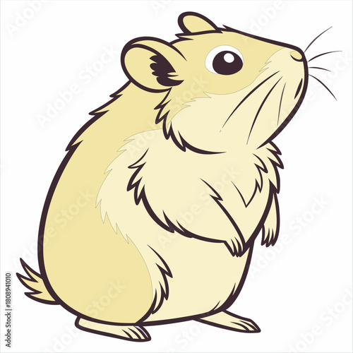 Cute cartoon illustration of a fluffy golden hamster standing and looking up with big expressive eyes