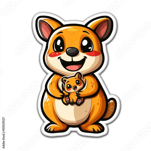 Cute Cartoon Kangaroo Holding Joey
