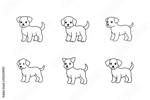 cute cartoon little puppy line art vector silhouette