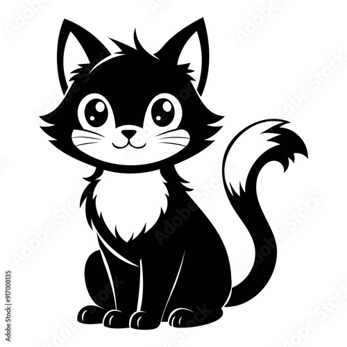 Cute Cat silhouette Vector Illustration isolated on a white background
