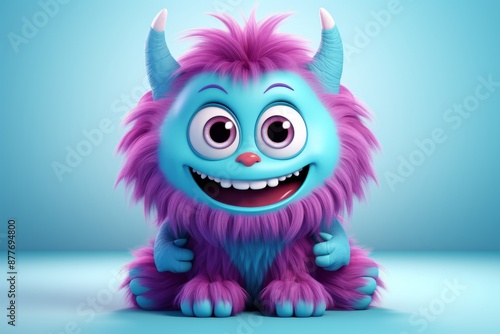Cute colorful 3D monster character in kids cartoon styl
