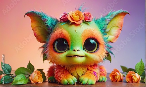 Cute Colorful Creature with Flower