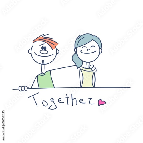 Cute couple. Boy hugging his girl. Vector illustration.