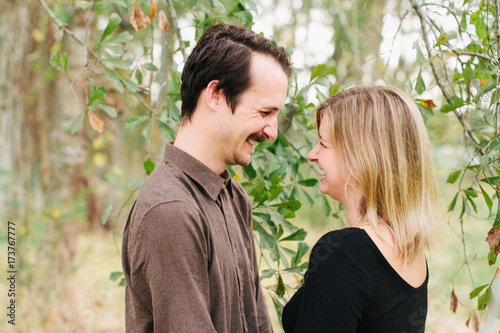 Cute Couple Laughing and Smiling Surrounded by Tree Branches