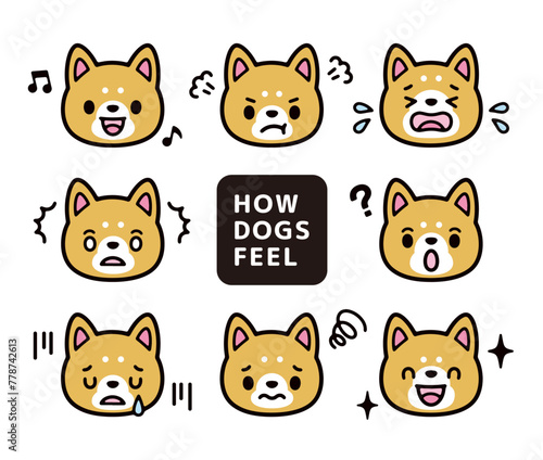 Cute dog character expression illustration set