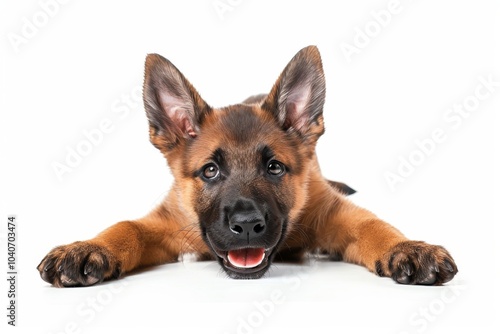 Cute Dog Isolated, Belgian Shepherd Puppy in Studio, Adorable German Shepherd Puppy Lying