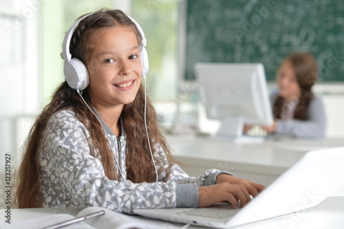 cute girl using laptop computer