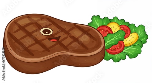 Cute grilled steak with salad illustration