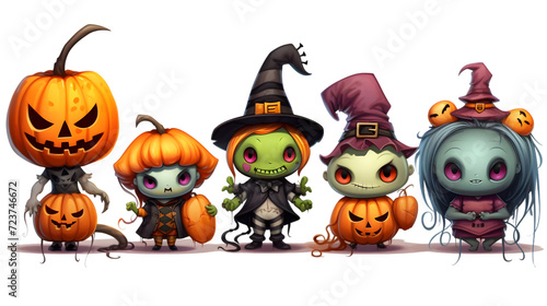 Cute halloween cartoon characters isolated on white background. Generative AI.