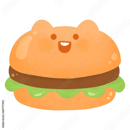 Cute Kawaii cat bread bun hamburger fast food happy character American food