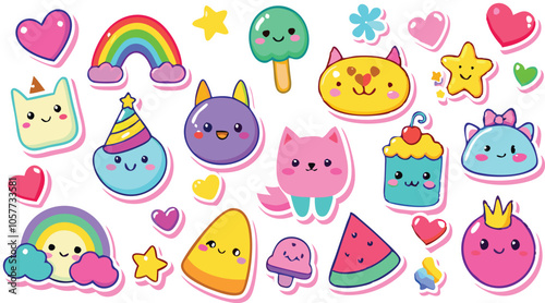 Cute Kawaii Stickers Collection Fun Colorful Happy