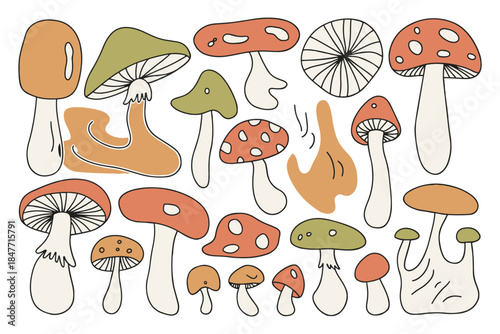 Cute Mushroom Vector Set with Hand Drawn Cartoon Fungi Illustration