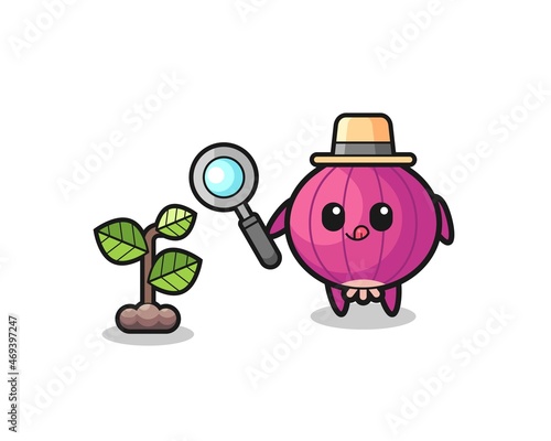 cute onion herbalist researching a plants