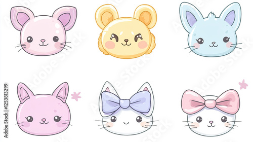 Cute Pastel Animal Faces with Bows