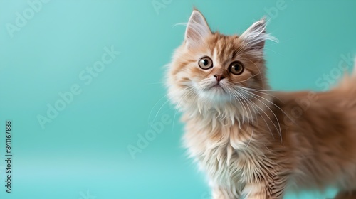 Cute Persian Kitten Standing on Pastel Periwinkle Background