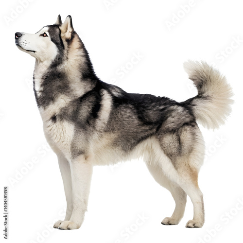Cute purebred Siberian husky Dog standing isolated with fluffy white fur