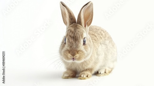 Cute rabbit with wide eyes, gazing curiously at the camera, isolated on a white background