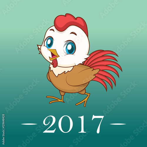 Cute rooster illustration with 2017 text