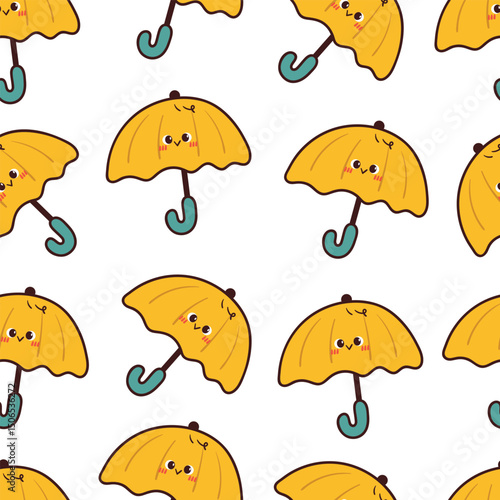cute seamless pattern cartoon yellow umbrella character for wallpaper and background