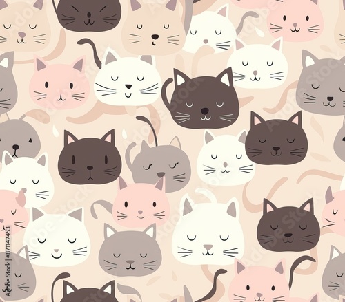 Cute seamless pattern with pretty kittens. Great for baby fabric, textile, wallpaper. Cats. Cat cartoon style. Pastel Colors. High quality AI generated image
