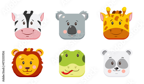 Cute square animal faces in cartoon style.