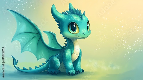 Cute teal dragon illustration