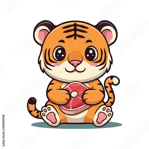 Cute Tiger Cartoon Vector Icon Illustration Animal Nature Icon Concept Isolated Vector of cute tiger
