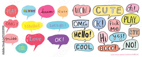 Cute vector speech bubble colorful set,Hand drawn set of speech bubbles with handwritten for book ,card, business, poster design. Vector illustration design for fashion fabrics, textile graphics