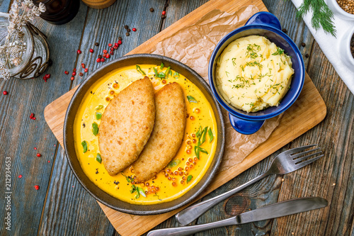 cutlets of pike with mashed potatoes