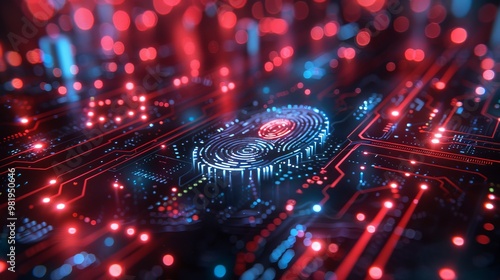 Cyber security theme with a fingerprint scanner and digital circuitry overlay