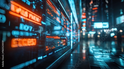 Cyberpunk Cityscape: Futuristic Stock Market Display at Night