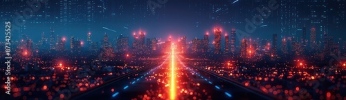 Cyberpunk Cityscape with Glowing Road