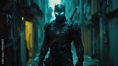 Cyberpunk Ninja Warrior in Neon-Lit Alley