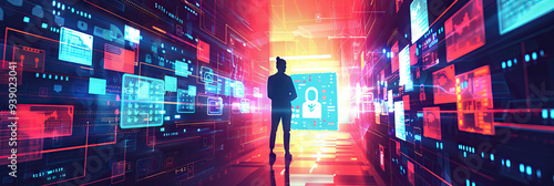 Cybersecurity Threats: Graphics illustrating the risks of data breaches and online privacy invasion, promoting awareness about cybersecurity.